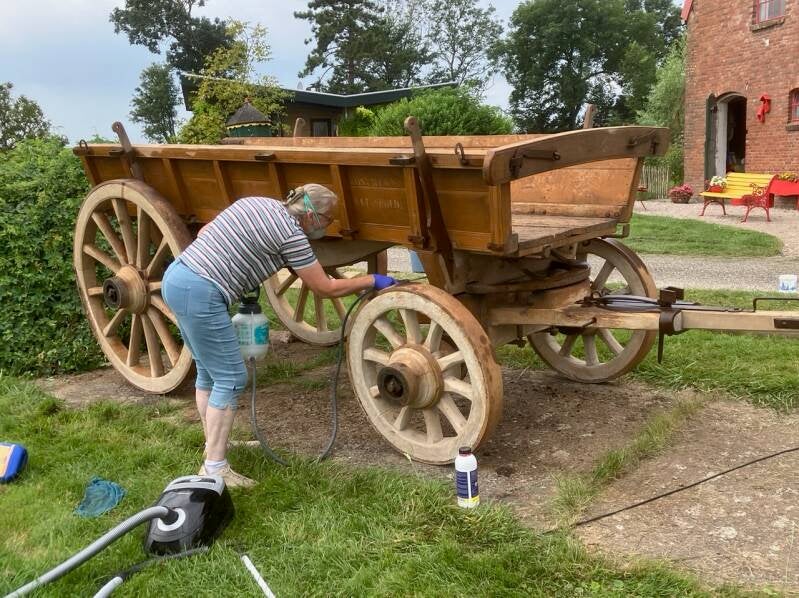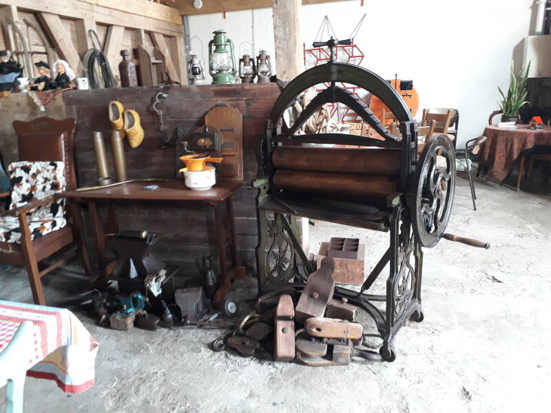 Arnold: De ouders van Annie hebben in 1966 het voormalige huis uit de 18e eeuw afgebroken. Vele oude spullen uit het huis waren echter bewaard en opgeslagen in de schuur. Toen wij hier in 2008 kwamen wilden we dit zoveel als mogelijk ook behouden. Diverse mensen uit de omgeving boden daarna ook spullen aan die we konden uitstallen. Een paar jaar geleden is het museum in Hulst geheel vernieuwd. Het museum had een grote collectie landbouwwerktuigen waar na de nieuwe inrichting geen plaats meer voor was en die in depots belandden. Veel daarvan heeft nu een mooie plaats bij ons gekregen. Vanaf vorig jaar mogen we ons dan ook trouwens officieel een dependence van het Museum Hulst ’s Landshuis noemen.